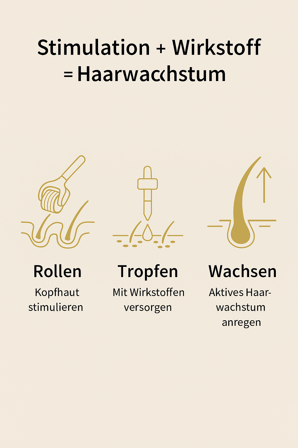 Diese Präzisionsnadeln fördern die Durchblutung, aktivieren die Haarwurzeln und steigern die Aufnahme der Wirkstoffe – ein Prinzip, das in der Fachwelt als Microneedling etabliert ist.